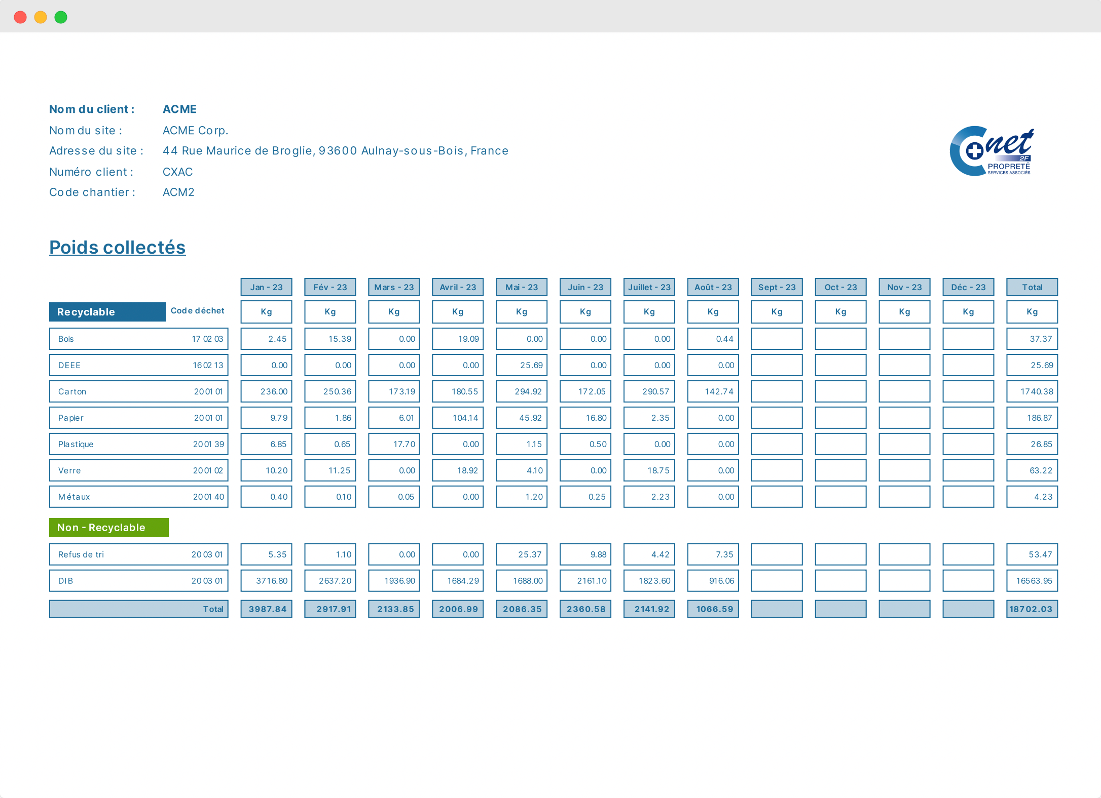 Le rapport mensuel détaillé est une aubaine. Il nous élimine la nécessité de trier à travers des montagnes de paperasse pour comprendre nos habitudes en matière de déchets. Tout est là, en quelques clics.